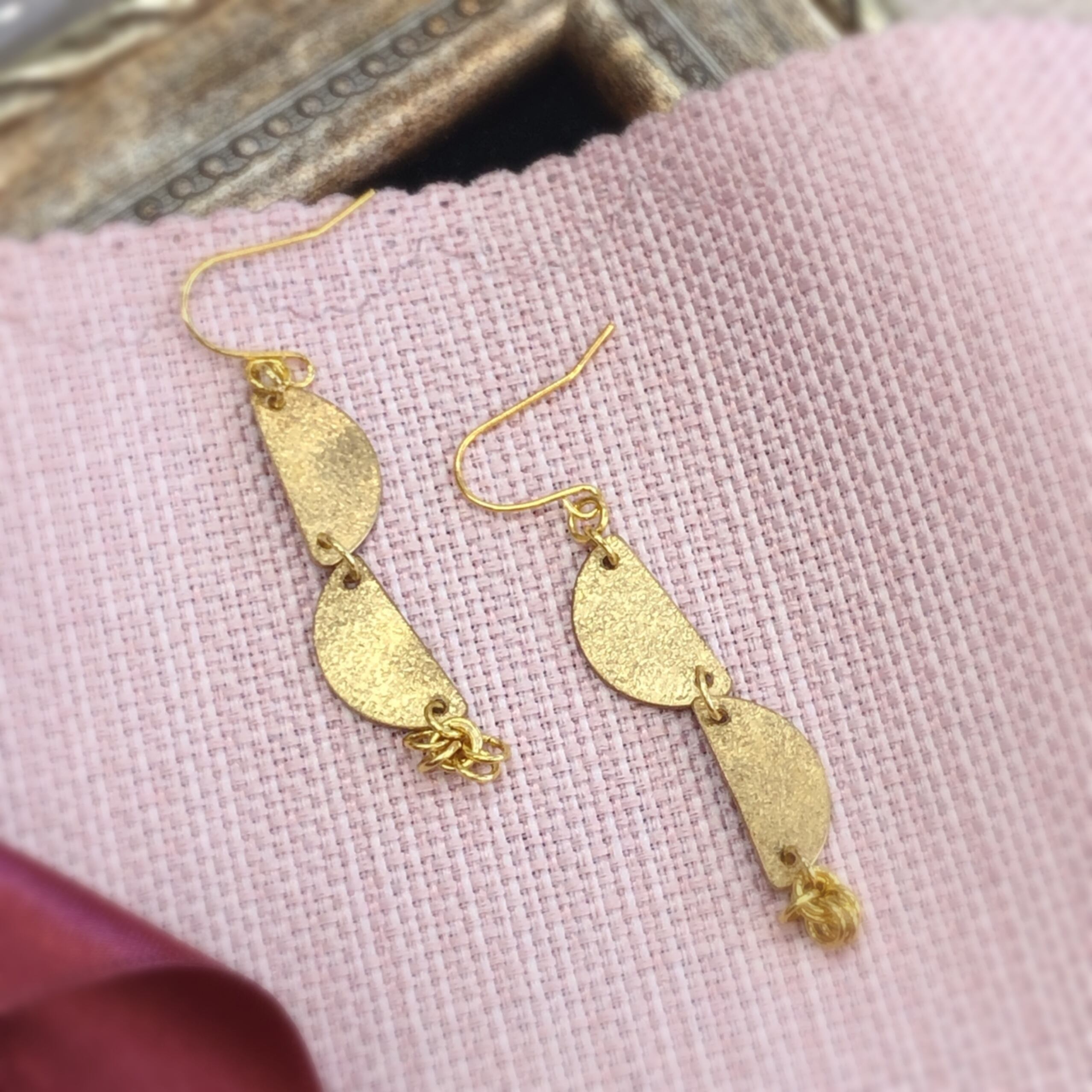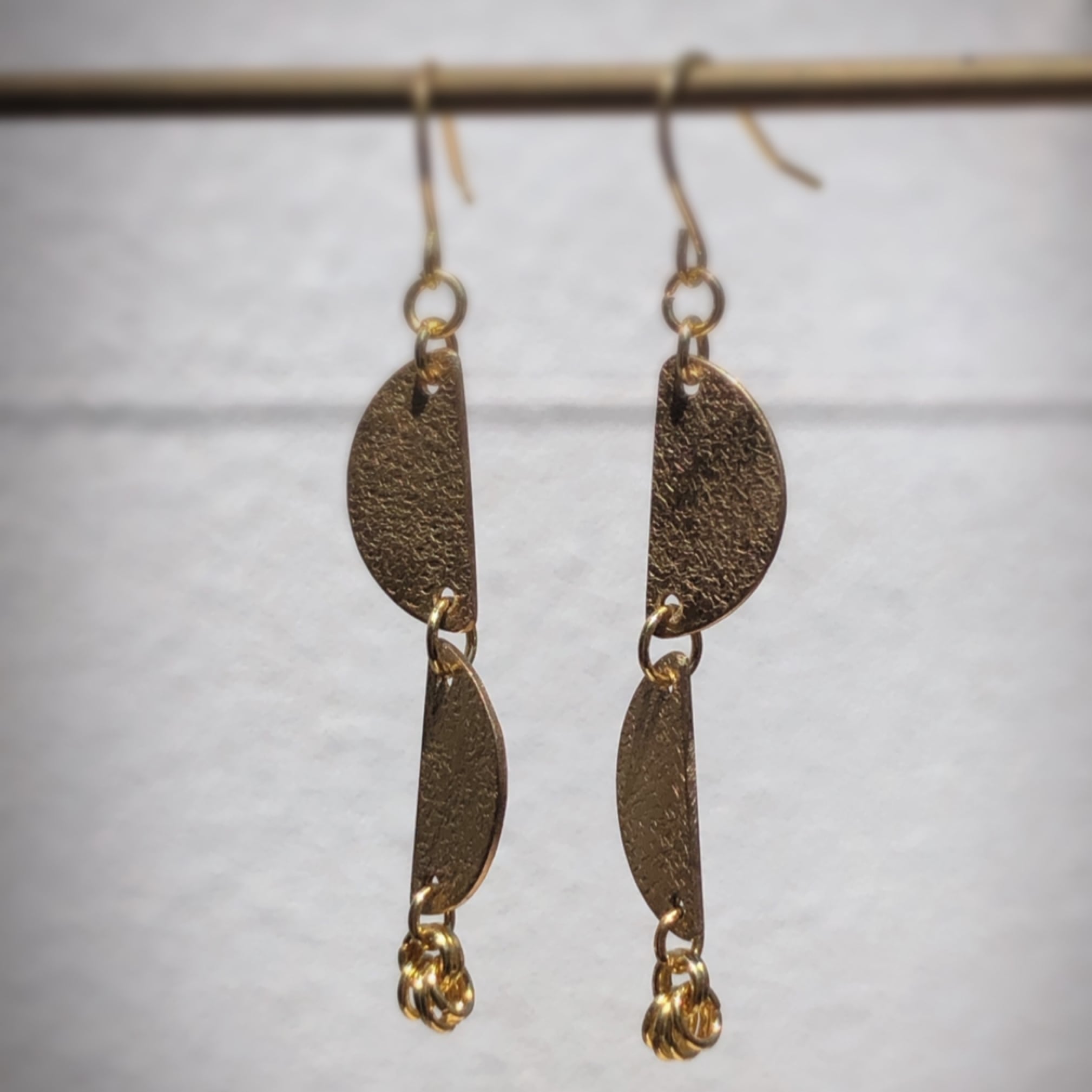 真鍮に金鎚で模様をつけた、ピアスです
